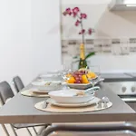 Utsikten över staden bidrar också till gästernas trevliga vistelse. Den här 90 m² stora lägenheten erbjuder en dusch för ökad komfort. Det finns också hårtorkar, badlakan och handdukar.